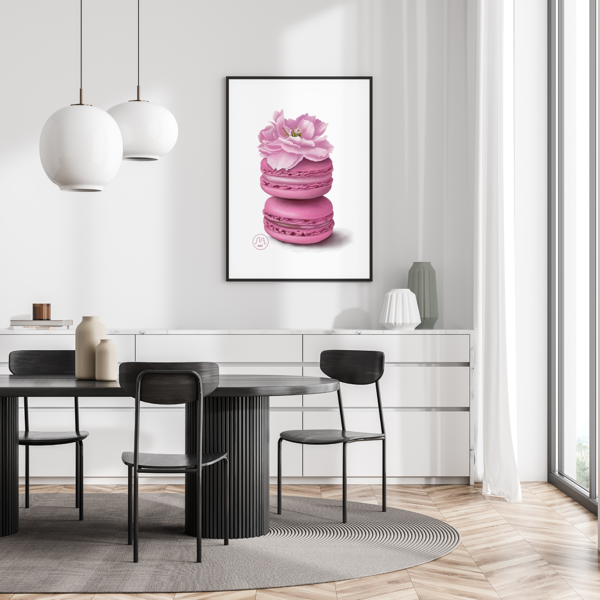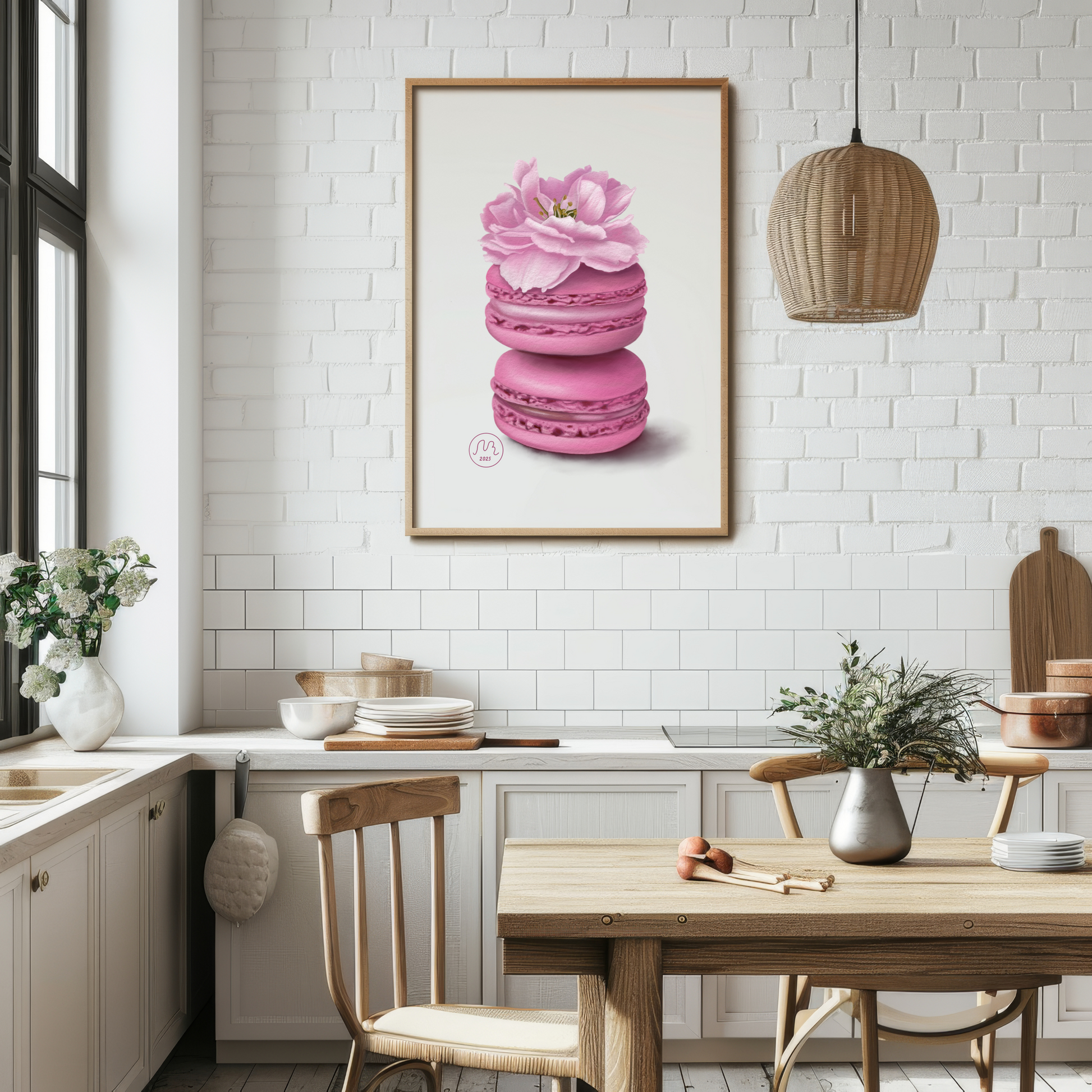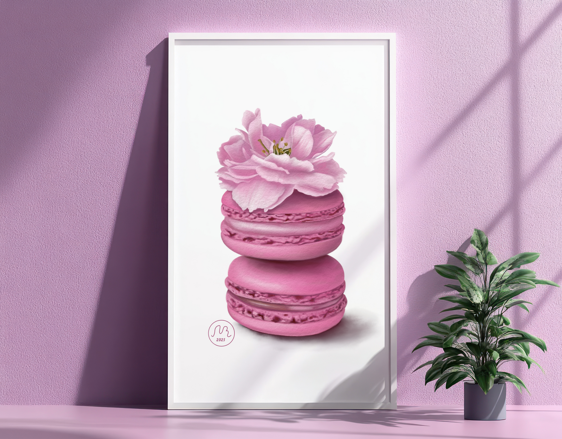 Add a touch of delicate charm to your space with this Cherry Blossom Macarons Art Print — a gentle fusion of sweet dessert vibes and blooming spring beauty. Featuring soft pastel tones and hand-drawn cherry blossom nestled in a stack of playful macarons, this artwork is perfect for brightening kitchens, nurseries, offices, or any cozy corner that needs a bit of imaginative floral joy.