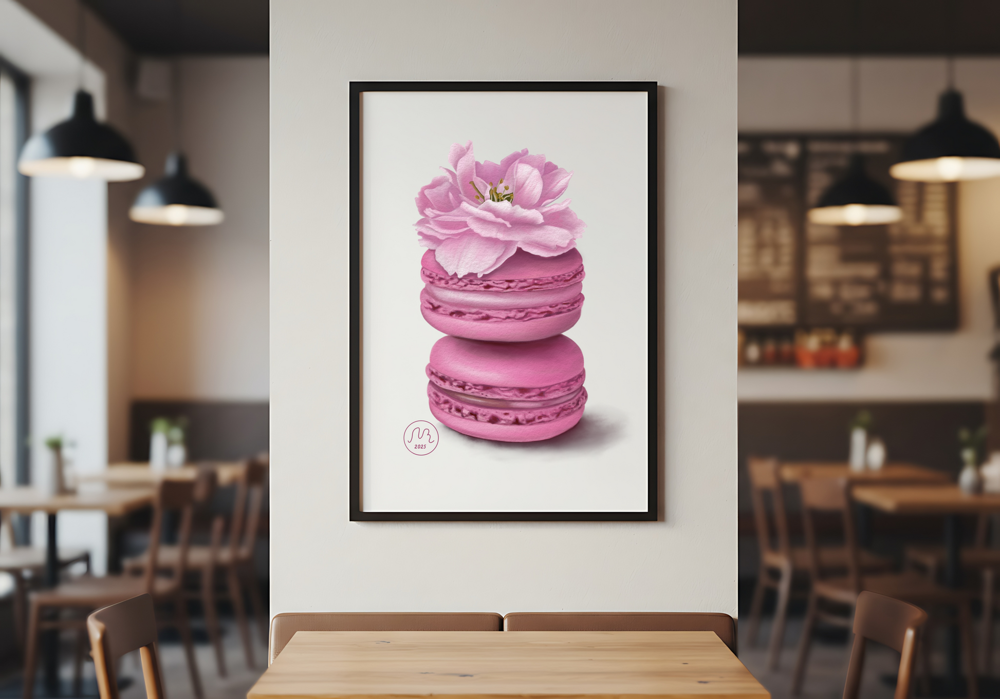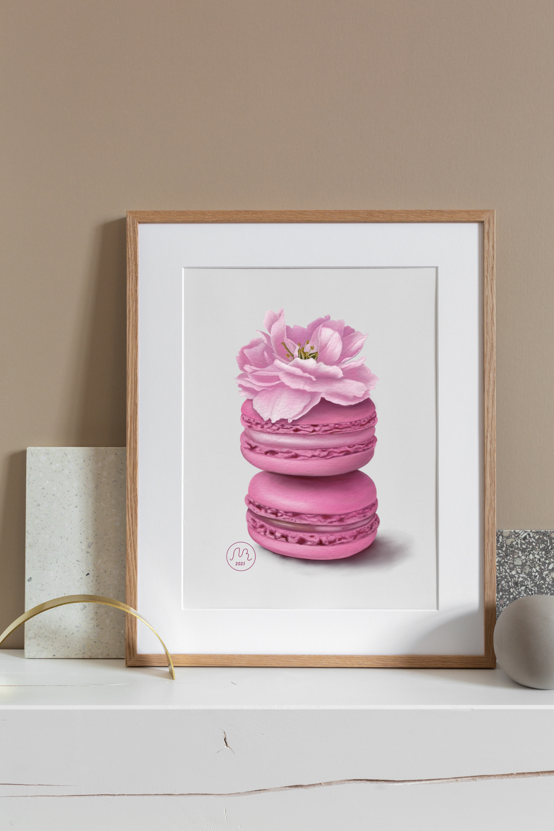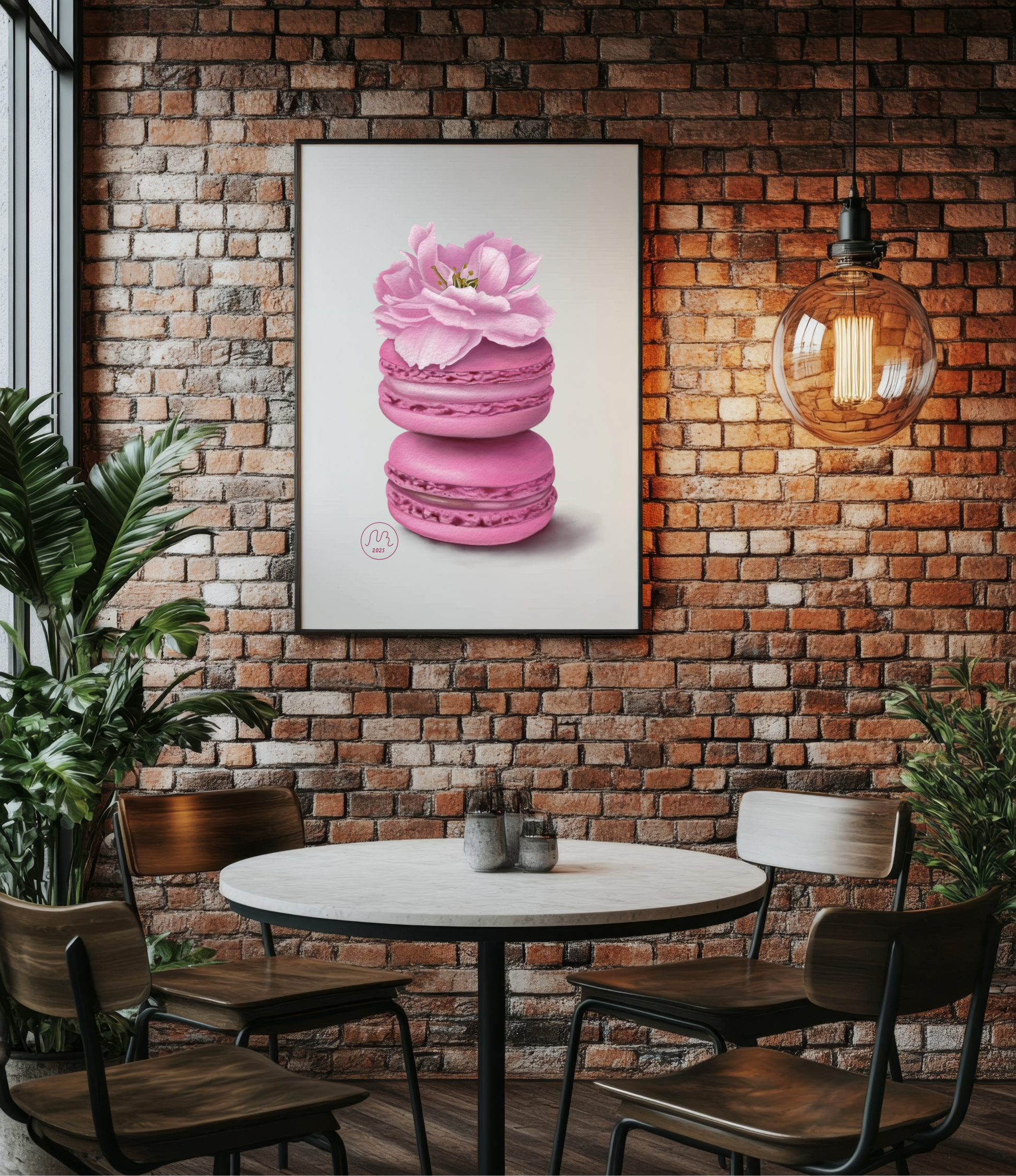 Add a touch of delicate charm to your space with this Cherry Blossom Macarons Art Print — a gentle fusion of sweet dessert vibes and blooming spring beauty. Featuring soft pastel tones and hand-drawn cherry blossom nestled in a stack of playful macarons, this artwork is perfect for brightening kitchens, nurseries, offices, or any cozy corner that needs a bit of imaginative floral joy.