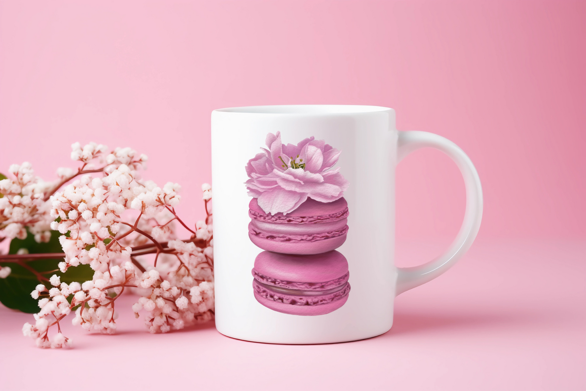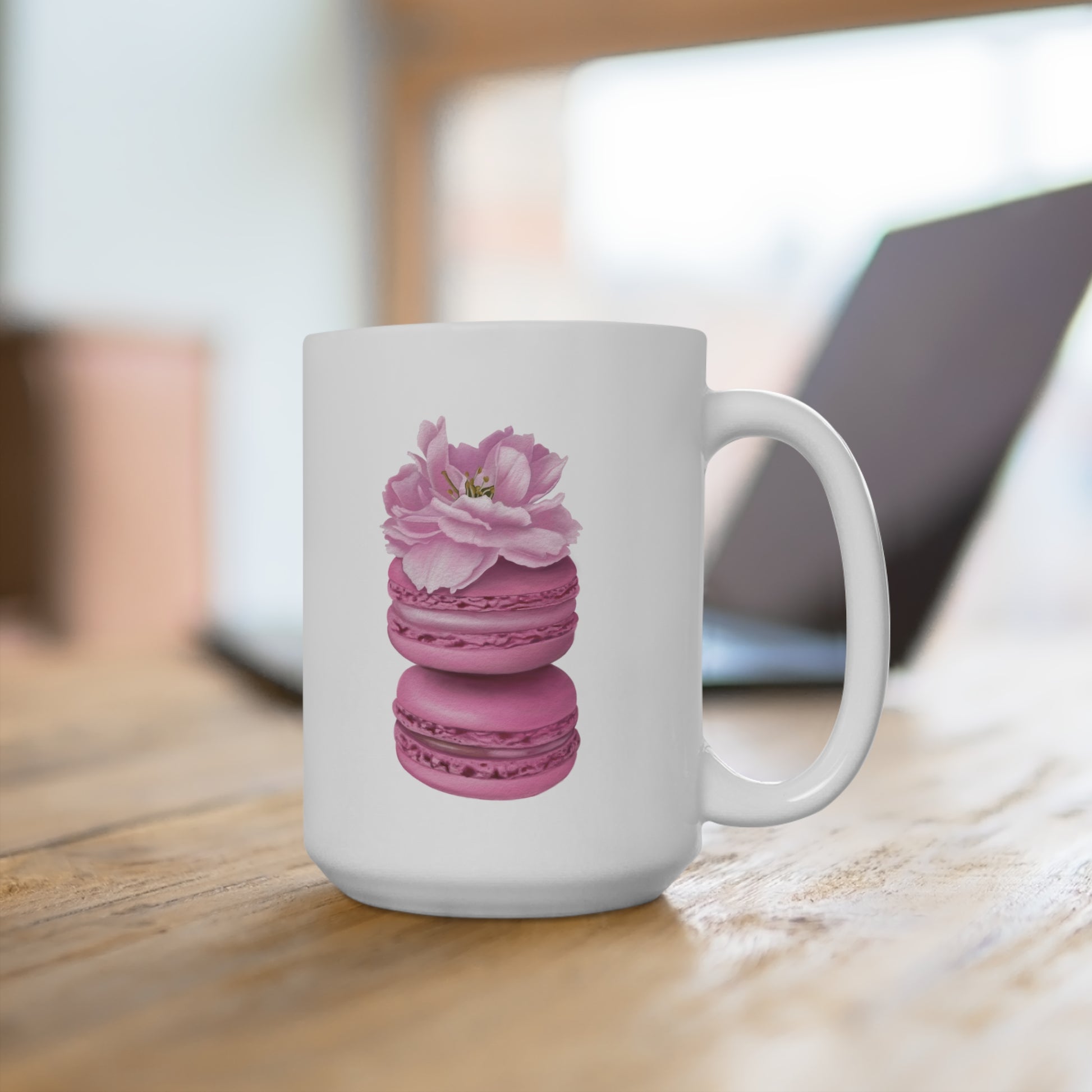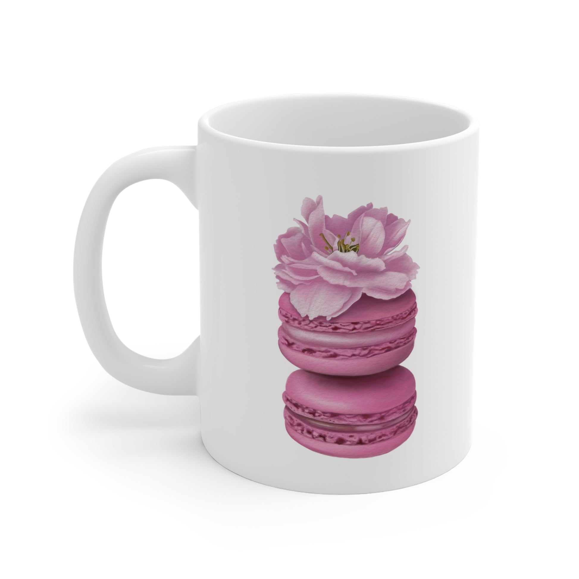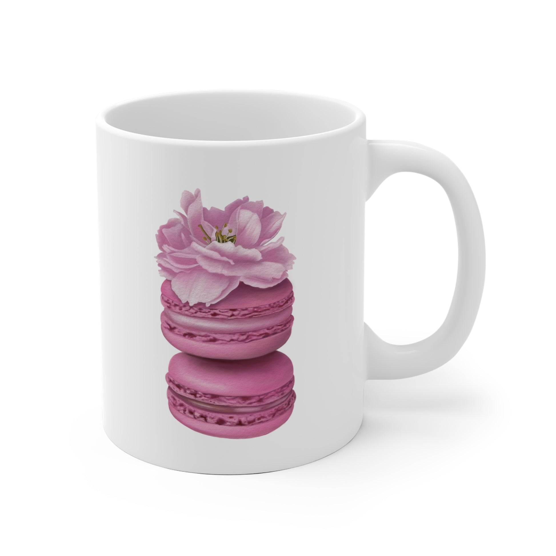 Start your day with sweetness and charm. This delightful ceramic mug features a whimsical Cherry Blossom Macarons illustration, printed on both sides for a cozy, artful experience from every angle. Whether you’re enjoying a quiet morning moment or sharing coffee with a friend, this mug brings a touch of floral joy to your daily routine.