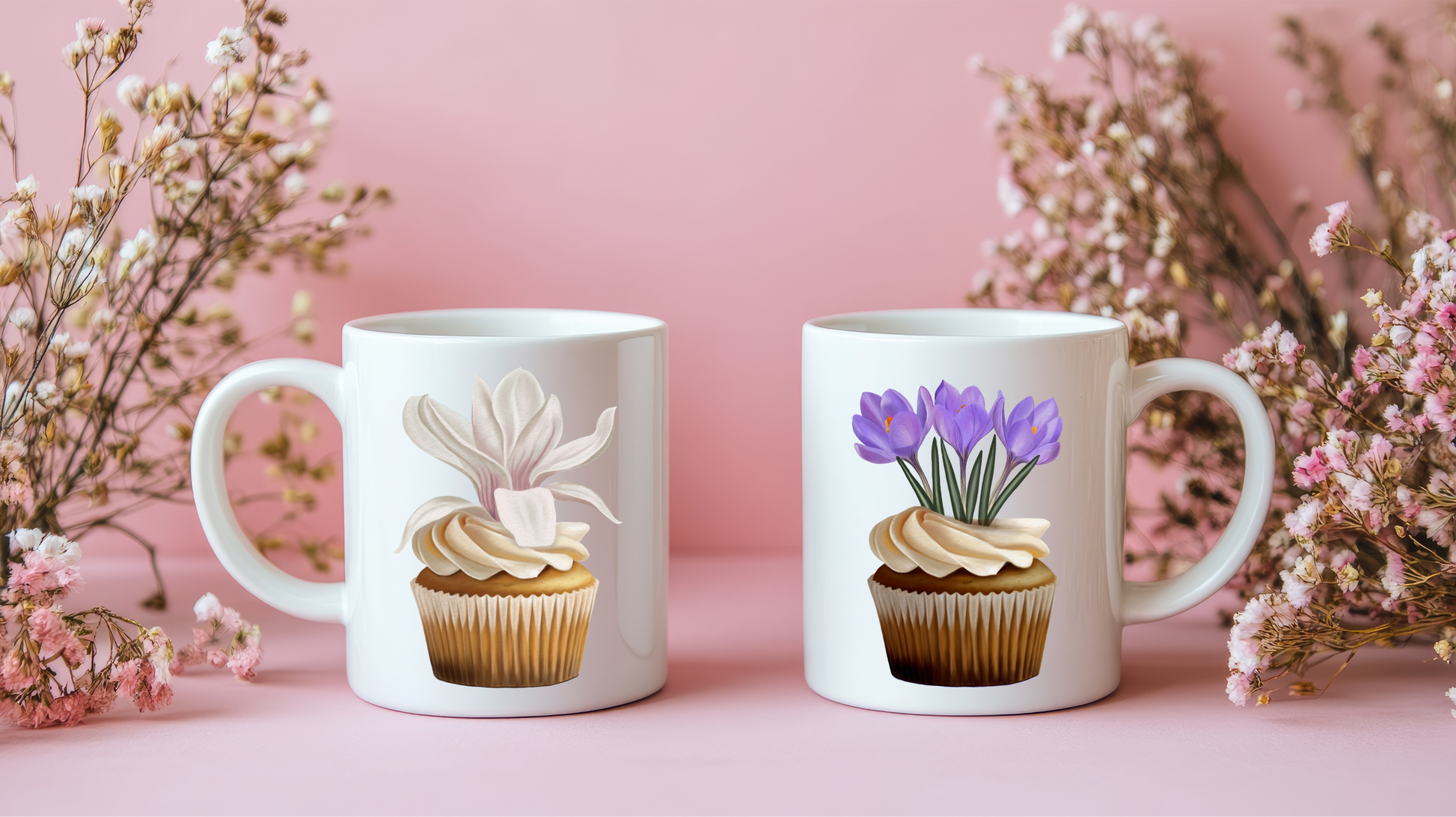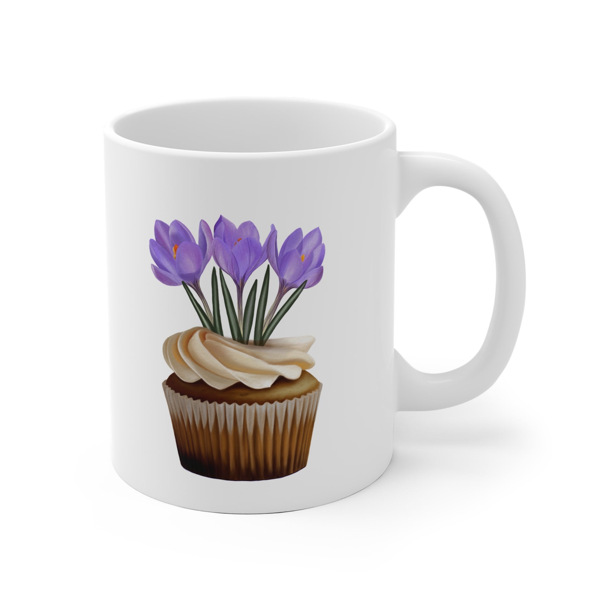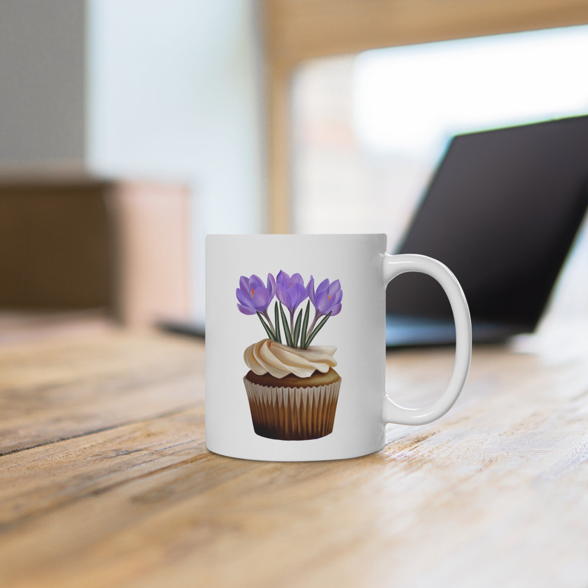 Start your day with sweetness and charm. This delightful ceramic mug features a whimsical crocus cupcake illustration, printed on both sides for a cozy, artful experience from every angle. Whether you’re enjoying a quiet morning moment or sharing coffee with a friend, this mug brings a touch of floral joy to your daily routine.