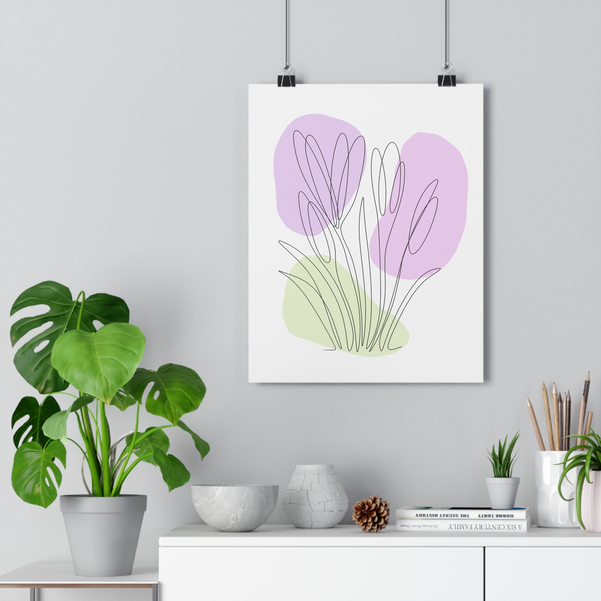 Add a touch of modern botanical charm to your space with this Crocus One Line Art Poster. This minimalist line art floral print features vibrant colors and a premium textured matte finish, perfect for creating a serene atmosphere in any room. Ideal for art enthusiasts and nature lovers, this poster is a great addition to any home decor and makes for a thoughtful gift for birthdays, housewarmings, or Mother's Day.