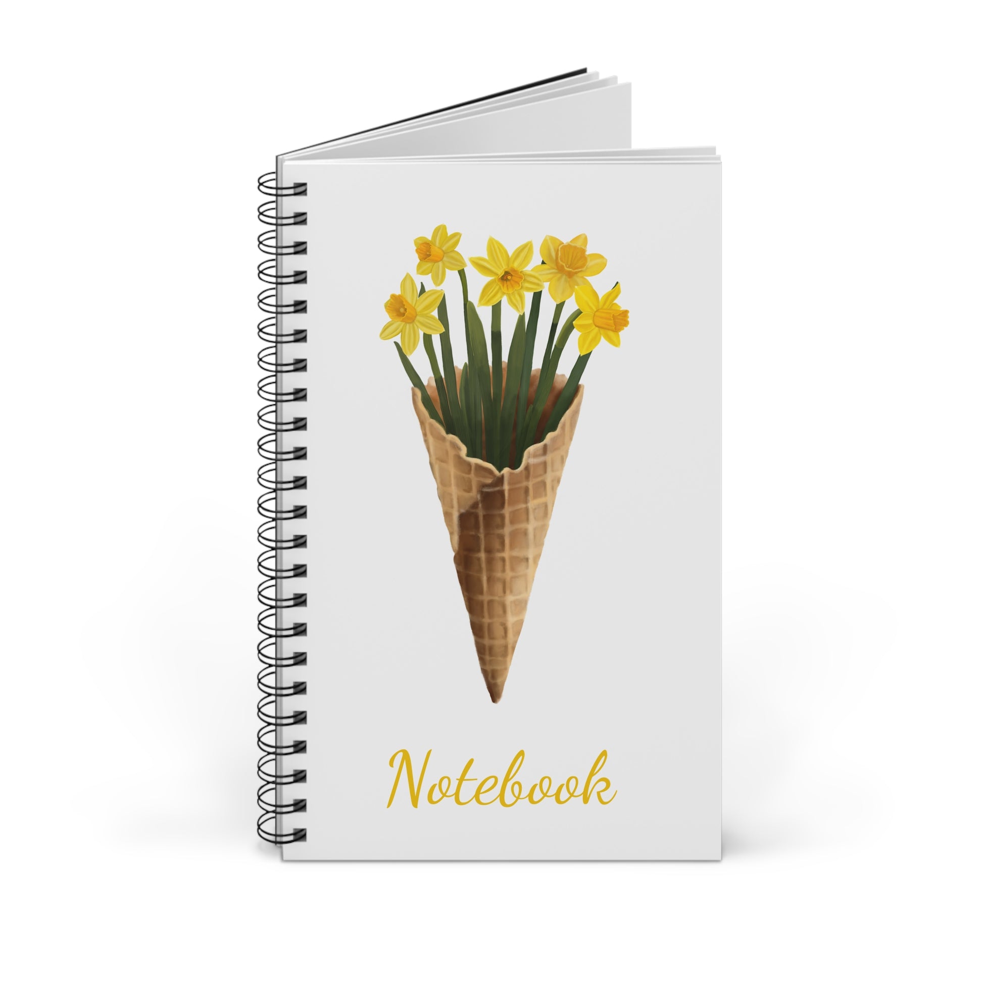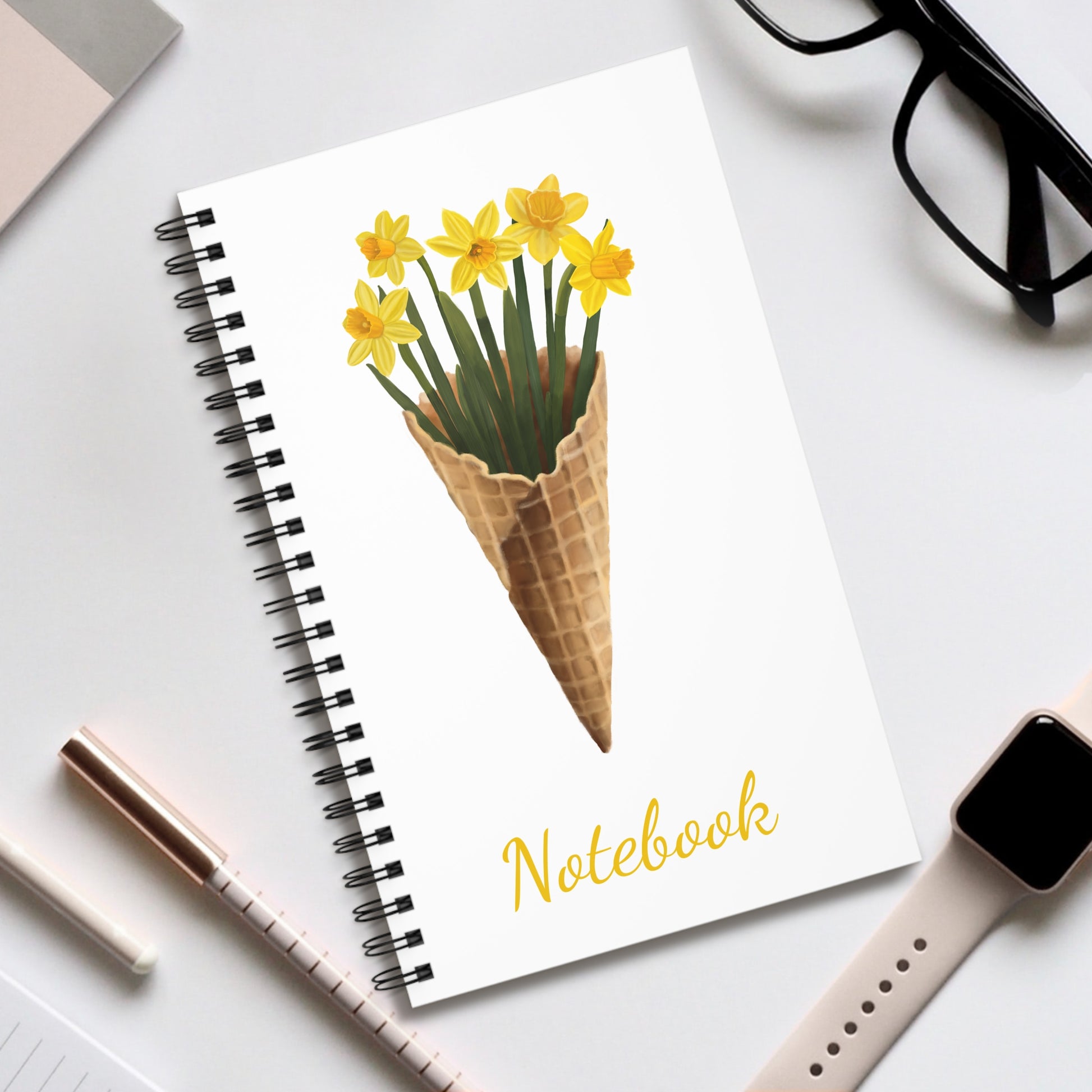 Let your creativity bloom with this whimsical Flower Ice Cream Spiral Journal — a joyful blend of nature and imagination on the cover, perfect for note-taking, journaling, or sketching on the go. This vibrant floral cone design adds a playful and dreamy touch to your stationery collection, ideal for artists, students, writers, or anyone who loves charming, unique notebooks, or those who love floral designs.