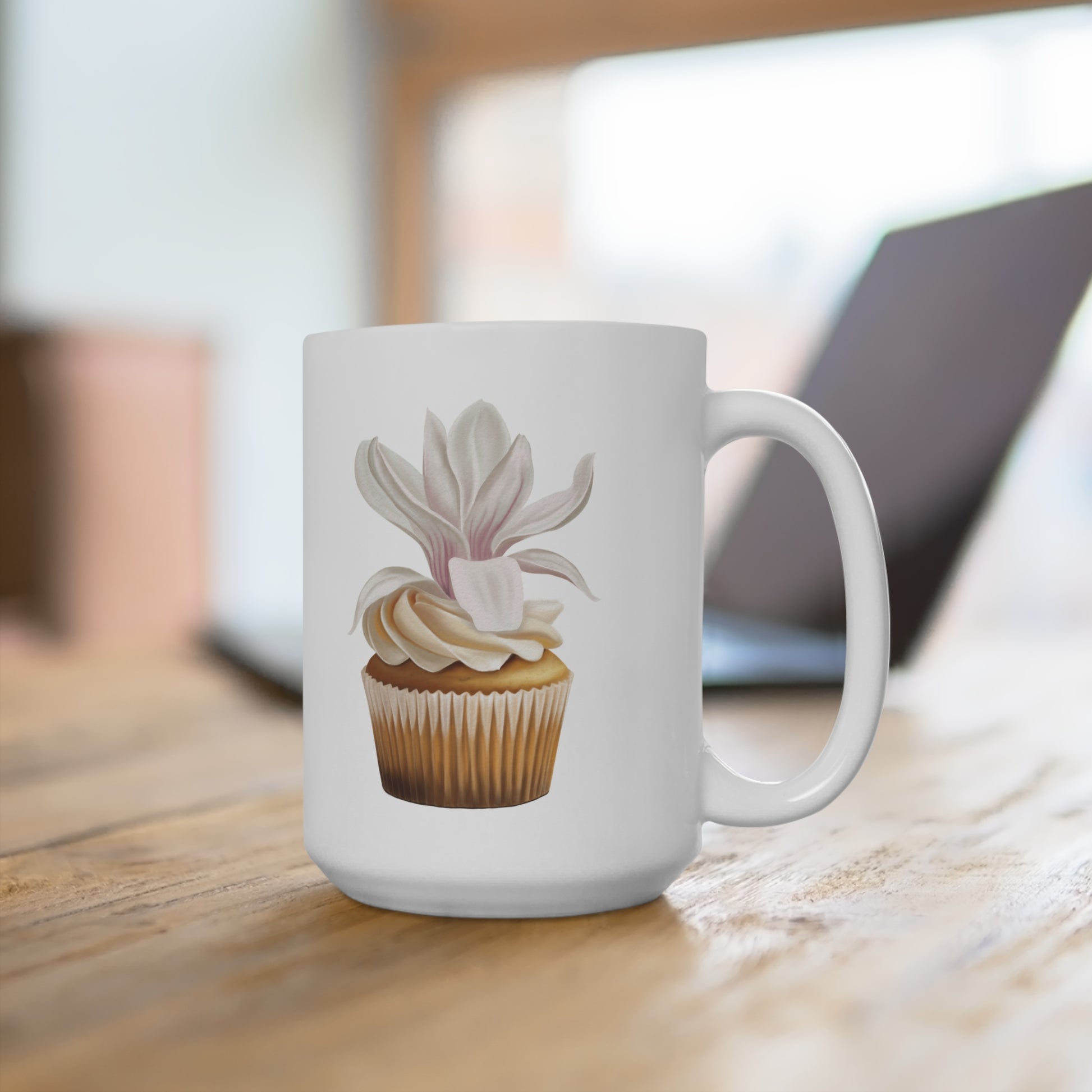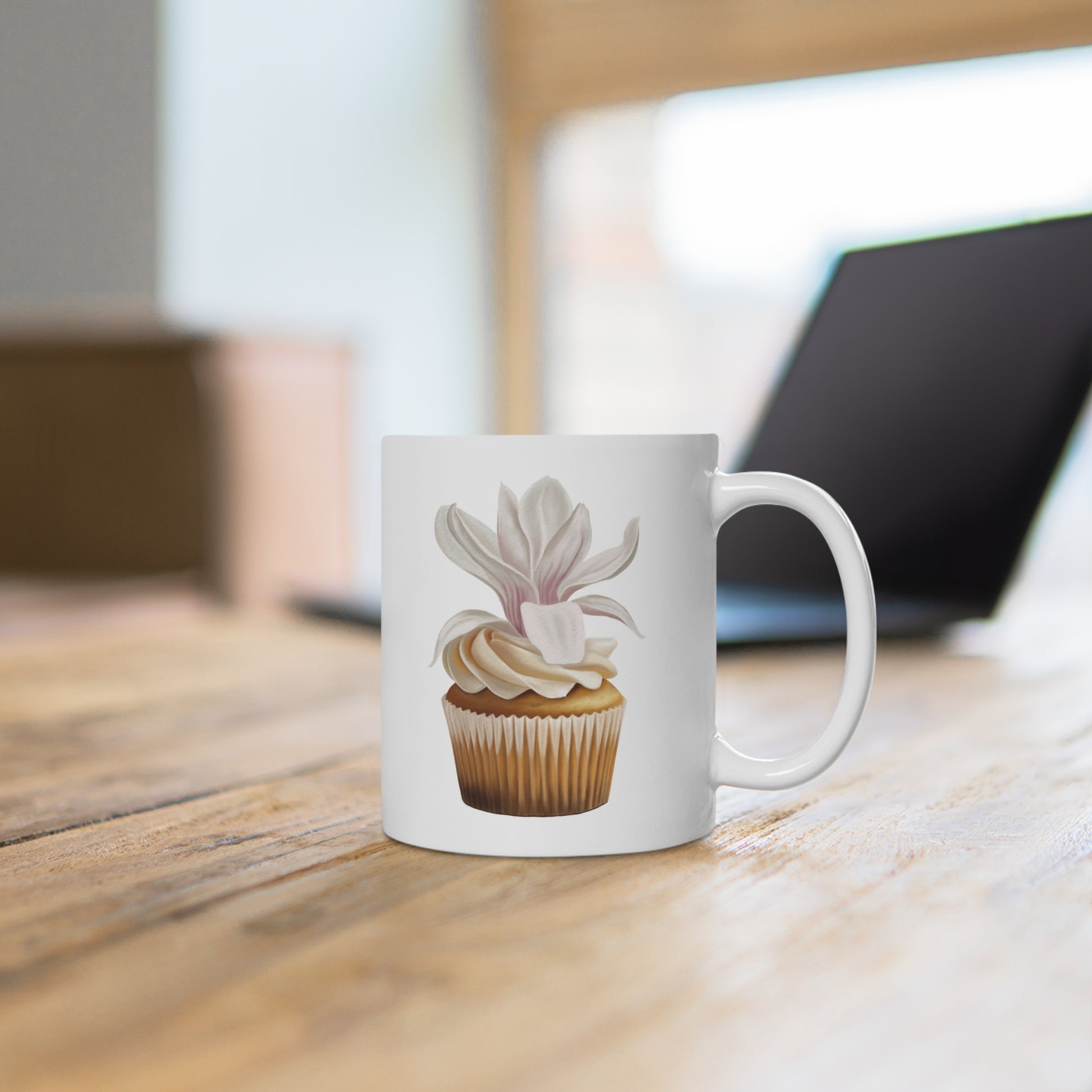 Start your day with sweetness and charm. This delightful ceramic mug features a whimsical magnolia cupcake illustration, printed on both sides for a cozy, artful experience from every angle. Whether you’re enjoying a quiet morning moment or sharing coffee with a friend, this mug brings a touch of floral joy to your daily routine.