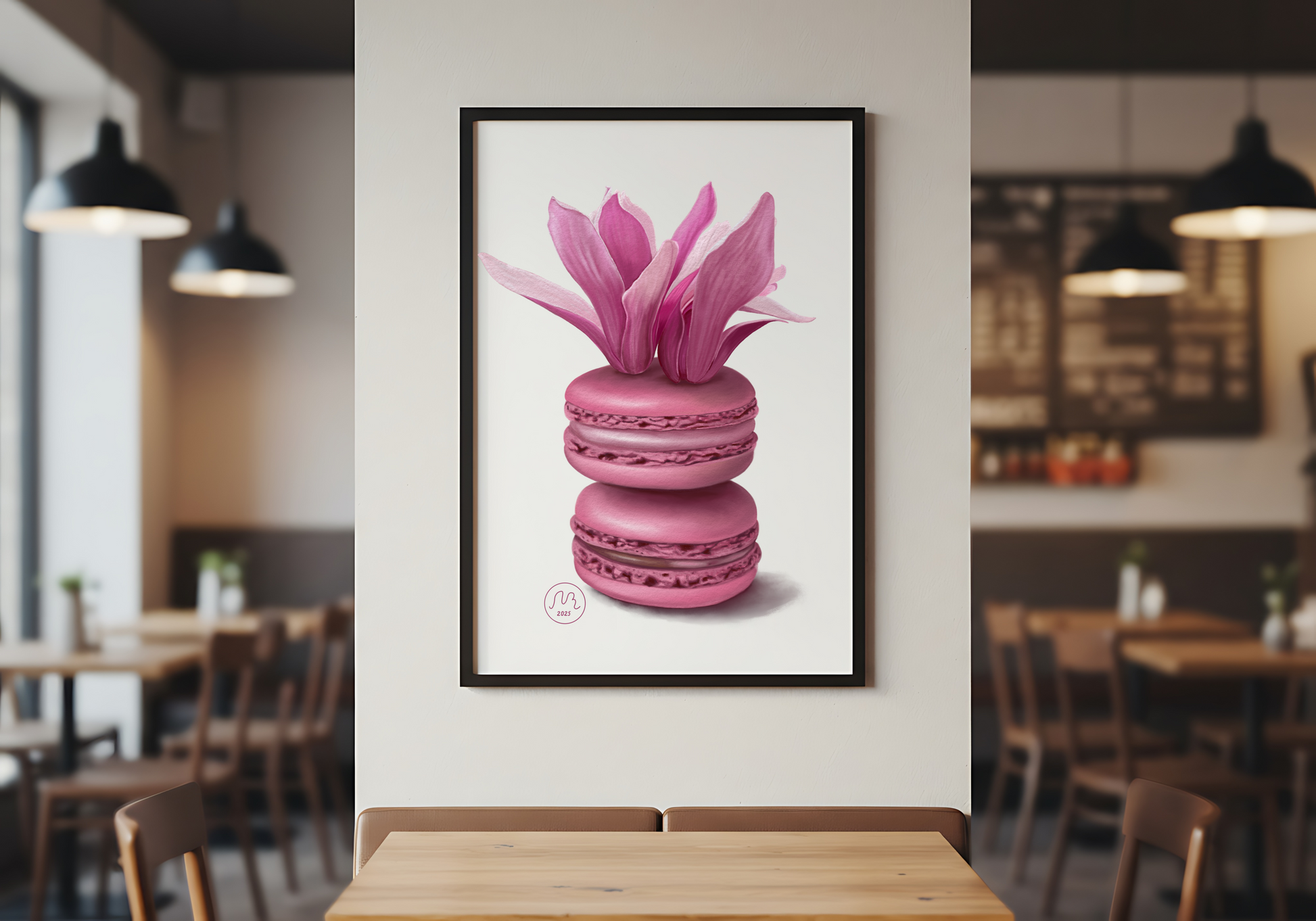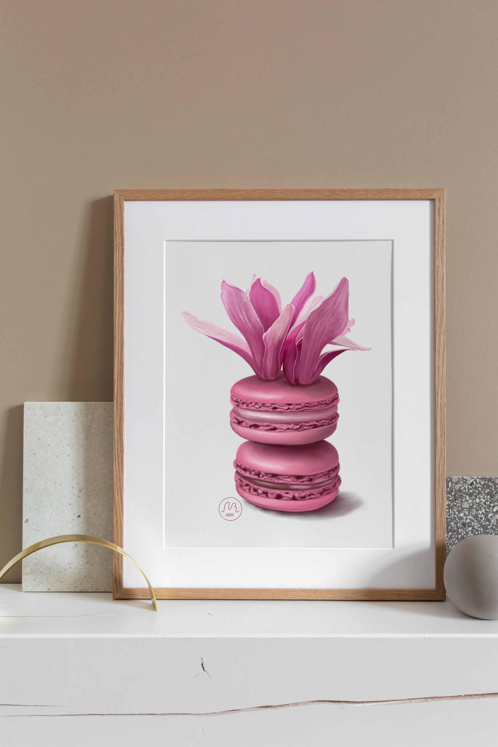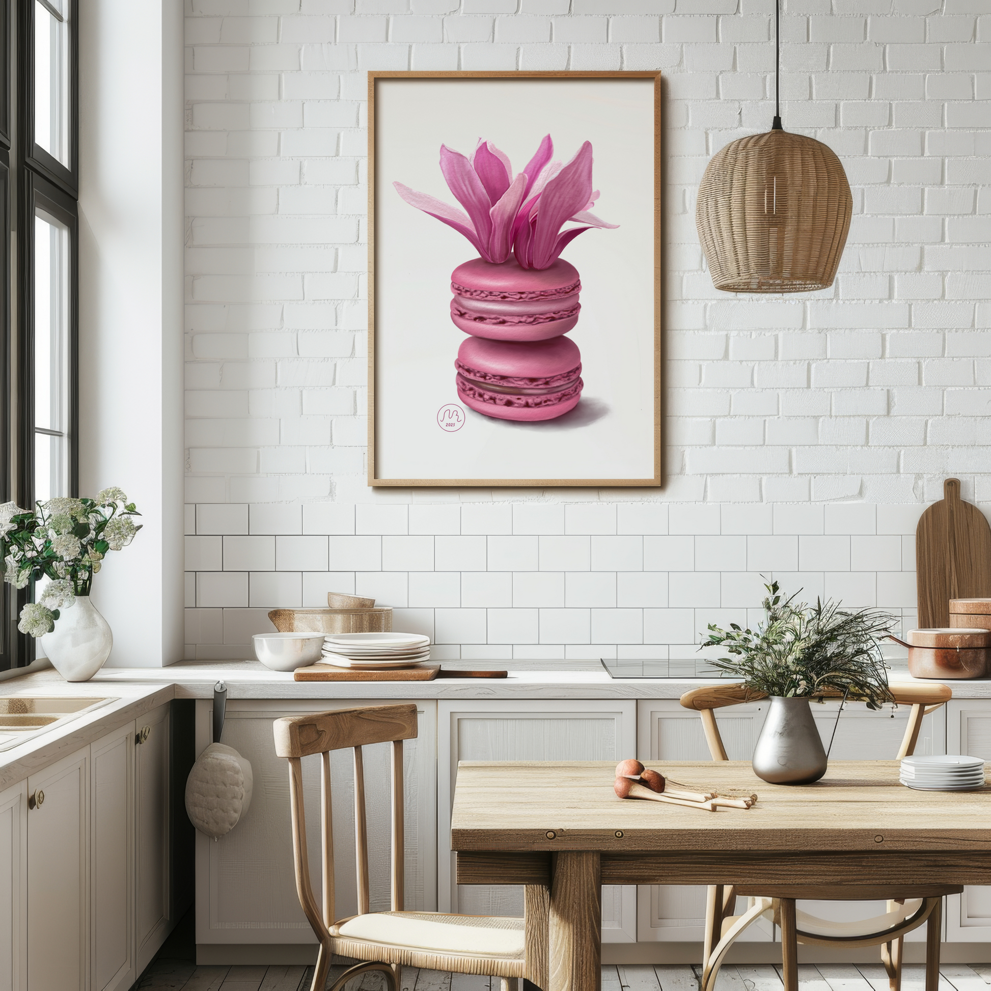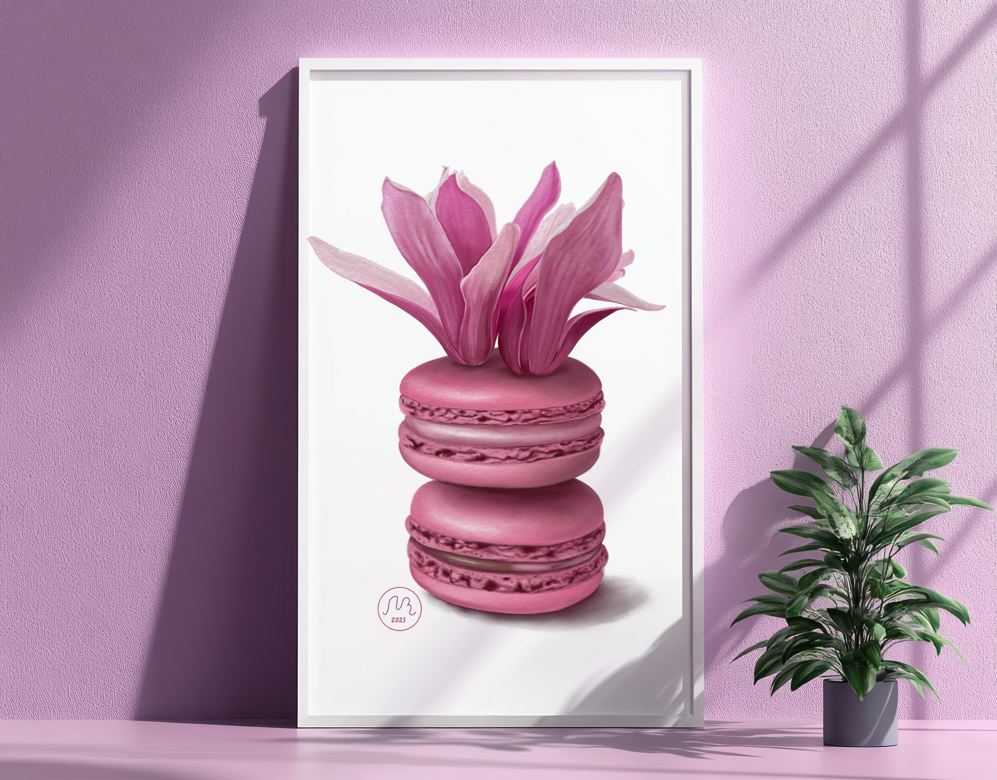 Add a touch of delicate charm to your space with this Magnolia Macarons Art Print — a gentle fusion of sweet dessert vibes and blooming spring beauty. Featuring soft pastel tones and hand-drawn magnolia blossoms nestled in a stack of playful macarons, this artwork is perfect for brightening kitchens, nurseries, offices, or any cozy corner that needs a bit of imaginative floral joy.